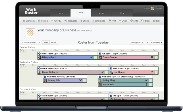 Imagine a world where roster planning is no longer a headache. With WorkRoster, it's possible! Our drag-and-drop simplicity, instant alerts for changes, and simple, yet powerful, apps make shift management quick and easy.